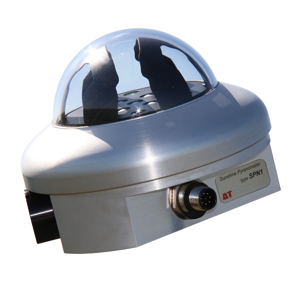 SPN1采用一排7個(gè)微型熱堆傳感器和控制器控制遮光方式來測(cè)量射入日光的直射和散射部分。遮光方式和微型熱堆傳感器的排放,使得無論太陽在什么位置,至少有1個(gè)熱堆傳感器完全暴露在陽光下并且至少有1個(gè)完全在陰暗處。所有7個(gè)微型熱堆傳感器接收同樣量的散射光。根據(jù)每個(gè)熱堆的讀數(shù),微處理器計(jì)算出總輻射和散射的地面光線,并通過這些值得估算出日照狀況。